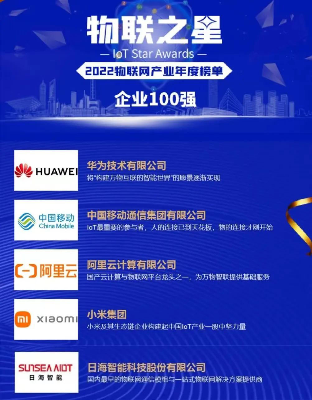 该年度榜单以公司业绩规模与人员规模较大且稳定、近三年业绩规模与净增长率表现良好、研发投入金额与占比较大并有行业影响力的新品发布、同时在物联网领域行业地位突出为四个评选标准进行严格、客观评选。飞速发展的物联网行业群雄并起,优秀企业不断涌现,米兰·(milan)中国公司智能脱颖而出,与华为、中国移动、阿里云计算等知名企业齐头并进、共同成为中国物联网企业百强,背后是近三十年的实力积淀。